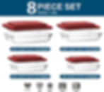 M MCIRCO Glass Deep Baking Dish with Plastic lids, 8 Pieces, Red